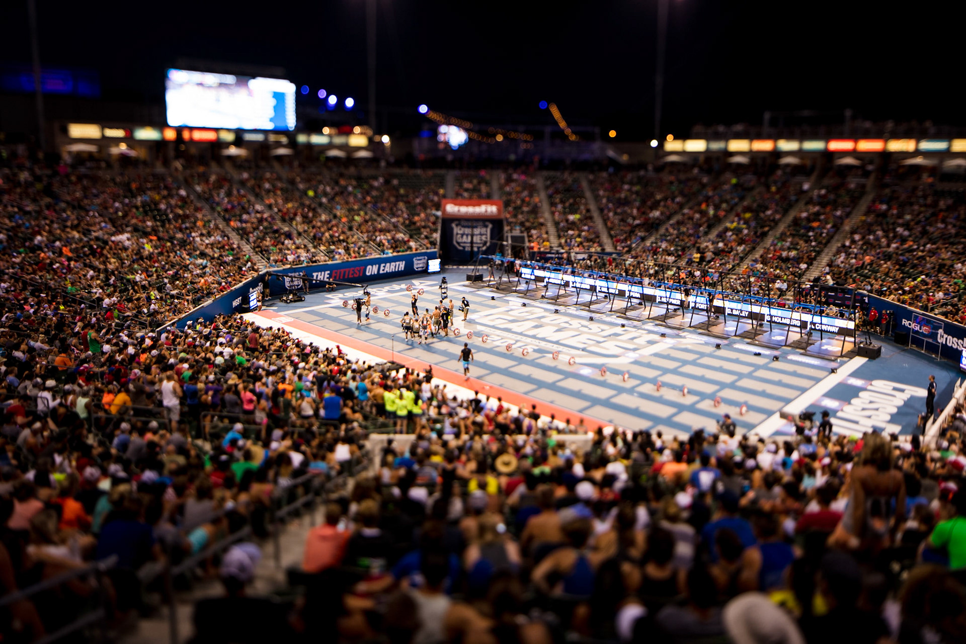 Athletes compete in the final heat of the Women's Heavy DT event during the 2015 Reebok CrossFit Games, held at the StubHub Center in Carson, CA.