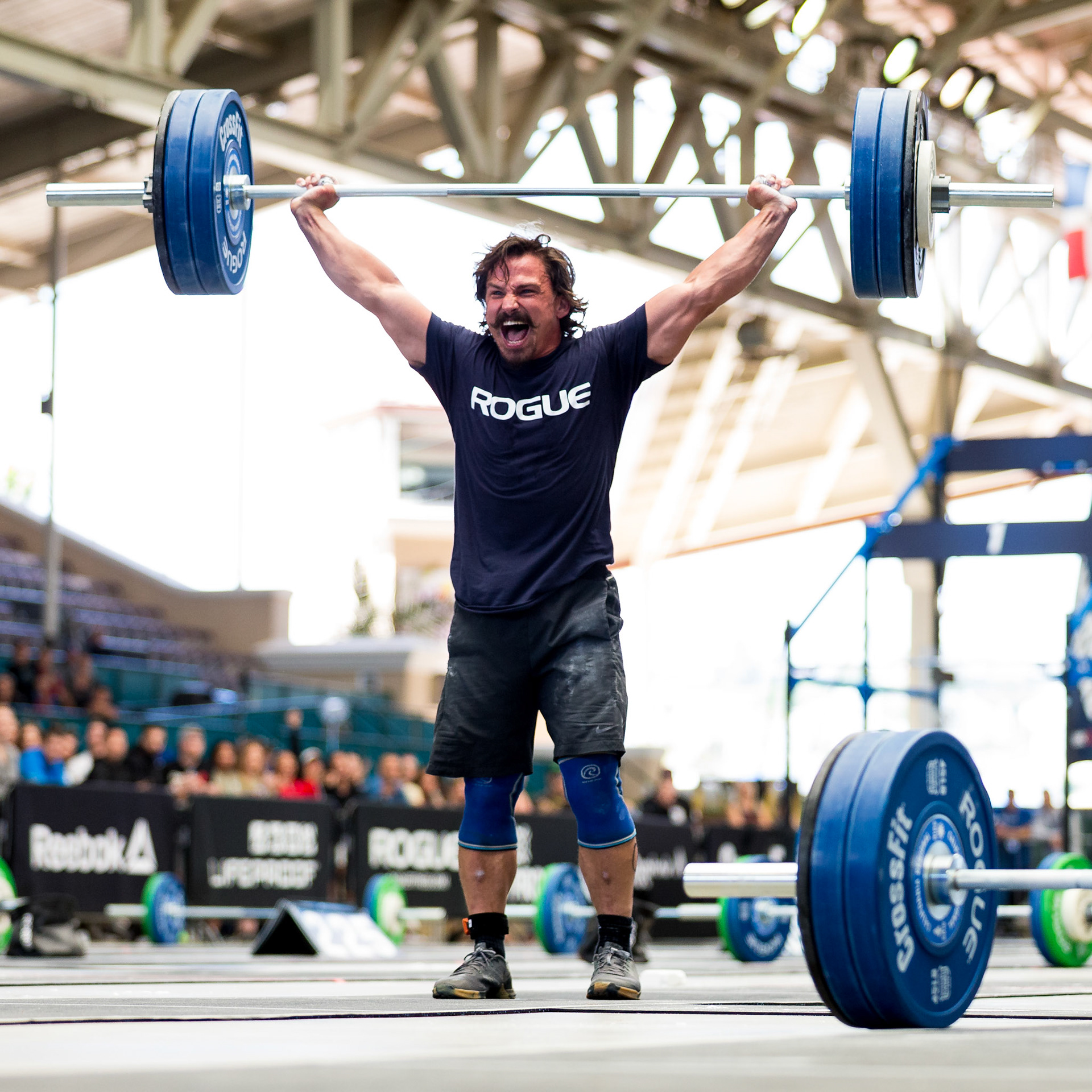 Dan Bailey celebrates winning the first event of the 2015 Reebok CrossFit Games California Regional at the Del Mar Fairgrounds in Del Mar, CA.