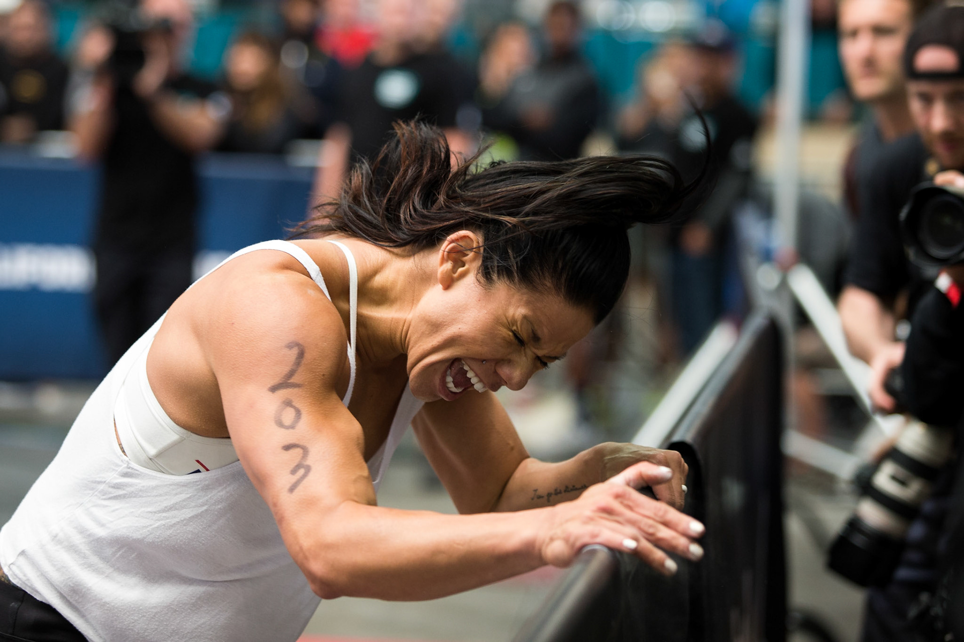 Katrin Davidsdottir celebrates a successful lift during the Clean and Jerk event at the 2015 Reebok CrossFit Games, held at the StubHub Center in Carson, CA. Davidsdottir would go on to win the overall title in the women's division.