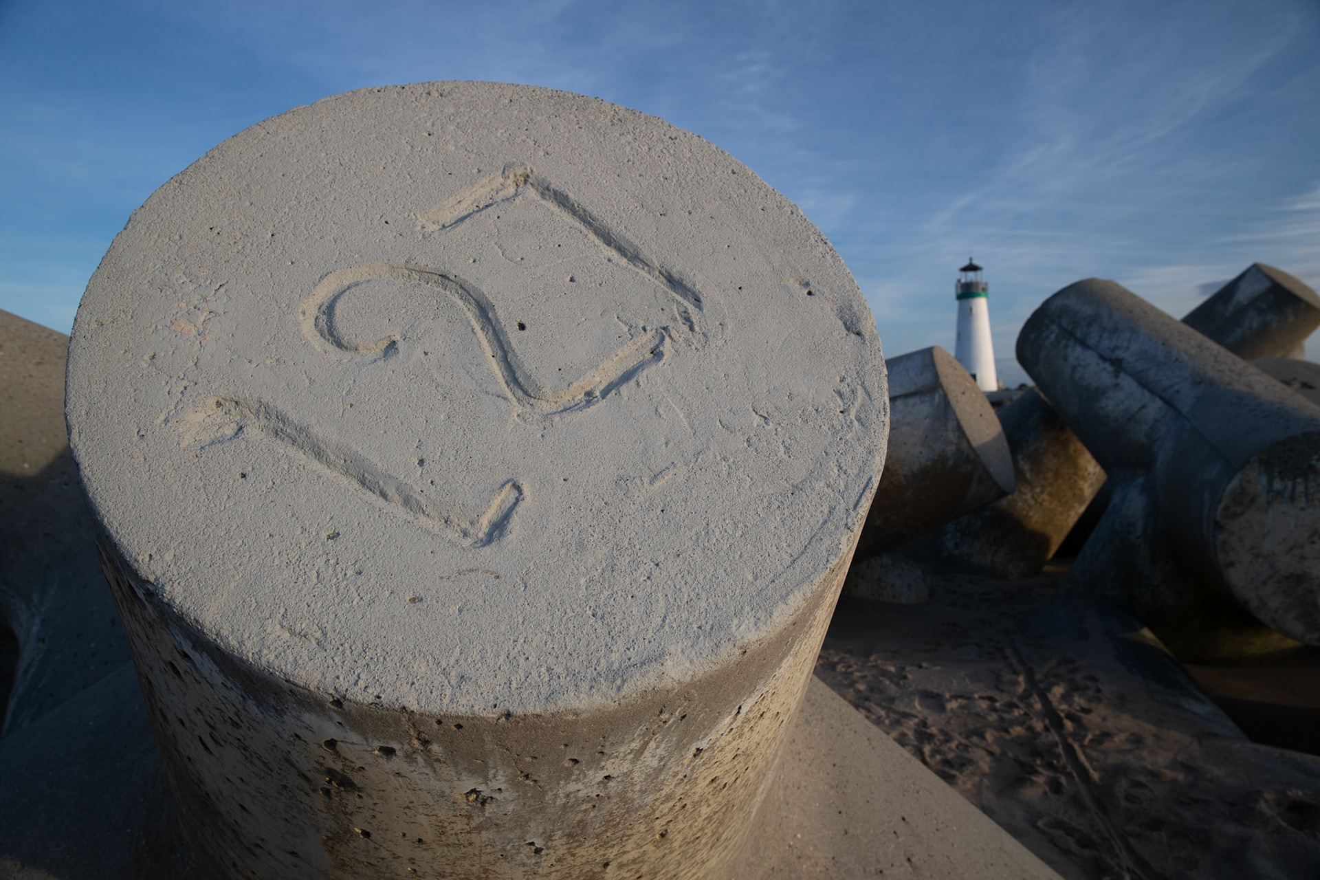 Foam from a wave rests on the sand on Seacliff State Beach.